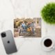 A beautiful design with the message 'Feliz Navidad ' in beautiful real gold foil text and photo template . Background colour is customisable