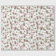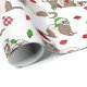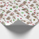 Cute Christmas ferrets in Santa hats with candy canes and string lights on a white background with scattered ornaments wrapping paper.