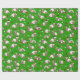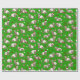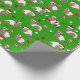 Cute Christmas ferrets in Santa hats with candy canes and string lights on a green background with scattered ornaments wrapping paper.