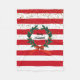 Christmas Festive Holly Berries Wreath Stripes Fleece Blanket