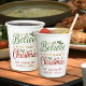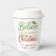Celebrate in style with these “Christmas Festive Modern Party Red Typography Paper Cups.” Featuring the festive phrase “Believe in the Magic of Christmas” in green, gold, and red script, surrounded by holly berries, gold snowflakes, glittering stars, and cheerful red and green dots, these cups bring instant holiday cheer to your gatherings. Personalise with your custom best wishes text or family name in bold red typography on a clean white background for a unique seasonal touch. Perfect for Christmas parties, holiday dinners, and family Xmas Eve celebrations.