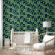 Geometric and stylised representations of plants and trees. The overall colour scheme includes various shades of green and blue, creating a harmonious and nature-inspired look.
