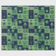 Geometric and stylised representations of plants and trees. The overall colour scheme includes various shades of green and blue, creating a harmonious and nature-inspired look.