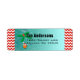 Pet Fish We Fish You a Merry Christmas Holiday. Funny Christmas Goldfish Chevron Zig Zag Pattern Return Address Label in Red and Green and Blue Pet Goldfish in Plastic Bag Straight from the Pet Store with Santa Hat and Holly Leaf and Red Holly Berries