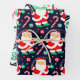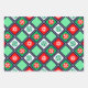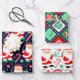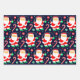 Creative fishing Christmas holiday gift wrap featuring Santa fisherman, candy canes and red and green Christmas peppermint candy.