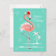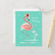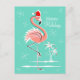 Stylish design with a retro touch featuring a festive pink flamingo wearing a red Santa hat, stars and palm trees decorated with baubles set against an aqua background. A customisable design for you to personalise with your own text, images and ideas. An original digital art image created by Quirky Chic.
