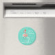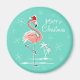 Stylish design with a retro touch featuring a festive pink flamingo wearing a red Santa hat, stars and palm trees decorated with baubles set against an aqua background. Magnet with a customisable design for you to personalise with your own text, images and ideas. An original digital art image created by Quirky Chic.