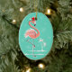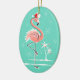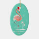 Stylish design with a retro touch featuring a festive pink flamingo wearing a red Santa hat, stars and palm trees decorated with baubles set against an aqua background. A customisable design for you to personalise with your own text, images and ideas. An original digital art image created by Quirky Chic.