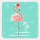 Stylish design with a retro touch featuring a festive pink flamingo wearing a red Santa hat, stars and palm trees decorated with baubles set against an aqua background. A customisable design for you to personalise with your own text, images and ideas. An original digital art image created by Quirky Chic.