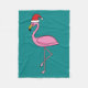 Christmas Flamingo with Santa Hat Fleece Blanket