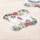 Trendy cute botanical winter seasonal holiday watercolor floral coaster featuring red burgundy and sage green borders of poinsettia, holly, pine cones, berries, boughs, and foliage on a clear white background., and an elegant bright red typography script family monogram / name initial. ++++++++++++++ Easy to personalise with your letter and name! ++++++++++++ Could be a festive decor for your Christmas table!
