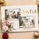 Christmas Floral Gold Joyful Text 2-Photo Holiday Card