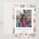 Christmas Floral Happy Holidays Family Photo Beige Holiday Card