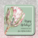Create stickers to label your Christmas holiday homemade goods, cookies, candy, treats, party favors and more featuring a beautiful hand painted watercolor pink protea floral blossom on a mint green background, and your message in chic lettering.