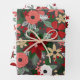 Colourful Christmas Wrapping papers featuring three different floral patterns with beautiful flowers and berries of different shades of red, green leaves and branches.