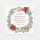 Inspirational Christmas napkins depict an elegant watercolor floral wreath design with red and pink Poinsettias, Eucalyptus greenery, and berries. It features Bible Verse Numbers 6 24-26 "The Lord bless you and keep you; The Lord make His face shine upon you, ...And give you peace."