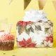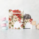 Beautiful and flourishing red and white Poinsettias, holly berries and foliage in watercolor covers the wrapping paper for a lush expression.