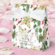 Beautiful Christmas poinsettias, berries and evergreen branches with your details chic lettering on the front of these tent style party favour boxes, perfect for your special holiday occasion. MATCHING items in our store.