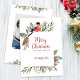 Merry Christmas family photo card features a beautiful watercolor winter foliage illustration with a script and serif fonts in a berry red shade. This minimal, simple and elegant design is ready for you to customise with your own photo and message. Change the text colour or keep as shown here. Please browse the Merry Christmas Family Photo Card Collection for more designs.