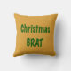 Square Throw Pillow decorative stylish home furnishing decor accessory printed with Christmas Forest Green Brat On Gold text typography graphic art design illustration and select products collection by TheFabricSeal print on demand shop at Zazzle.com #ZazzleMade https://www.zazzle.com/store/thefabricseal TheFabricSeal©️Original.
