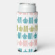 This seltzer can cooler has a mid-century modern Christmas design of four lines and a Christmas tree in pink, green, and turquoise repeating across the design. Like the design but want different colours? Message me.