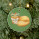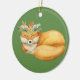 Sweet watercolor fox with Christmas foliage on green background. Customise back with name or other special message