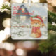 Christmas Metal Square Ornament featuring a fox set against a blue backdrop. The ornament showcases a fox, along with a winter tree and delicate snowflakes. This festive square metal ornament is perfect for Christmas, displaying a charming fox design on a blue background. The design incorporates a winter tree and snowflakes to complete the holiday scene.