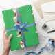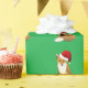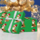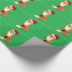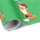 This gorgeous wrapping paper features a fox sitting almost like a dog and wearing a Santa hat on his head. This fun image is on a green background and is a very unique idea for Christmas gift wrap.