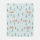 Imagine a delightful and cosy blanket that transports you to a charming winter scene with cute pine trees, adorable foxes, snowflakes, Christmas presents and a forest path. The blanket features a heartwarming illustration of a simple and adorable pine tree forest.