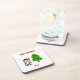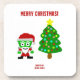 Here you can admire one of Christmas drawings, I call, "Christmas FrankenCheese," FrankenCheese dressed up as Santa, with a decorated Christmas tree, text says, "Merry Christmas." You can now order, "Christmas FrankenCheese," on this hard plastic coaster to wish someone a, Merry Christmas."