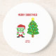 Here you can admire one of Christmas drawings, I call, "Christmas FrankenCheese," FrankenCheese dressed up as Santa, with a decorated Christmas tree, text says, "Merry Christmas." You can now order, "Christmas FrankenCheese," on this sandstone coaster to wish someone a, Merry Christmas."