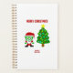 Here you can admire one of my Christmas drawings, that I call, "Christmas FrankenCheese," FrankenCheese dressed up as Santa, with a decorated Christmas tree, text says, "Merry Christmas." You can now order, "Christmas FrankenCheese," on this small planner to wish someone a, Merry Christmas."