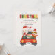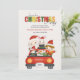 A Christmas party invitation featuring holiday characters, in a red car, with the word "Christmas" as a colourful header. (Vectors by Vecteezy). The card is easy to customise with your wording, font, font colour, paper shape and choice of paper type. Not exactly what you're looking for? All our products can be custom designed to meet your needs at no extra charge. Simply contact us at heartfelthelper@gmail.com. Coordinating products available: Just ask us!"