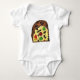 Baby suit features an original illustration of a slice of Christmas fruitcake.