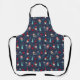Whimsical holiday design featuring Santa cupcakes, snowmen, gift boxes, string lights, and snowflakes on a dark blue background.