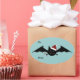 A silly black bat wearing a Santa hat and holding a candy cane on oval stickers.