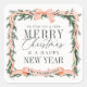 We wish you a very Merry Christmas & a Happy New Year, Green typography. Watercolor Christmas Garland and Ribbon Frame, holiday favor stickers.