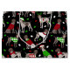 Cute German Shorthaired Pointer dogs with liver and white ticked coats sit and stand in festive holiday outfits. Santa hats, antlers, sweaters on a holiday background with scattered ornaments.
