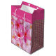 Christmas holiday gift bag shown in pink plumeria and pink plaid print design.