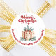 Perfect for homemade gifts. A white background, red text. Merry Christmas is written with a retro style font. Decorated with a gift box. Personalise and add your family