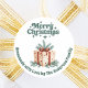 Perfect for homemade gifts. A white background, green text. Merry Christmas is written with a retro style font. Decorated with a gift box. Personalise and add your family