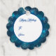 This Christmas gift tag is shown with a festive holiday blue snowflakes print.