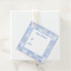 This Christmas gift tag is shown with a festive holiday blue snowflakes print.