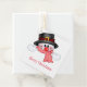 This gift tag is shown with a festive Christmas holiday snowman print.