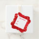 This Christmas gift tag is shown with a festive holiday red and gold snowflakes print.