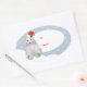 This Christmas holiday sticker is shown in the oval shape with a cute polar bear print.