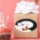 This Christmas holiday sticker is shown in the oval shape with a cute polar bear print.
