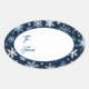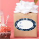 This Christmas gift tag sticker is shown with a festive holiday snowflakes print.
