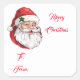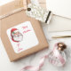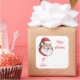 This Christmas gift tag sticker is shown with a festive Santa print.