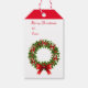 This Christmas gift tag is shown with a festive holiday candy cane wreath print.